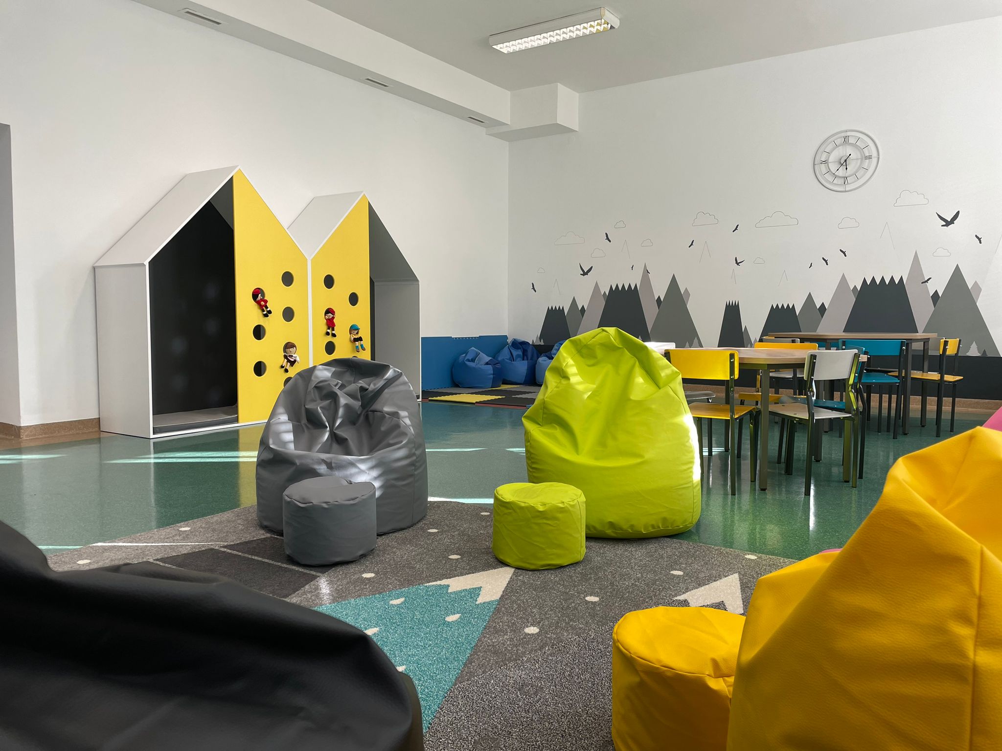 Kluczowym elementem była również konstrukcja domków zabawowych, które służą zarówno jako przestrzeń do zabawy, jak i miejsce do przechowywania zabawek. Meble do przedszkola na zamówienie zostały stworzone z myślą o bezpieczeństwie – krawędzie zaokrągliliśmy, a całość pokryliśmy nietoksycznymi materiałami, które są w pełni bezpieczne dla dzieci.